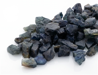 De blå safirer har medium til mørk farve og varierer i form, klarhed og størrelse. Et parti på 100 carat består af ca. 40 stk.