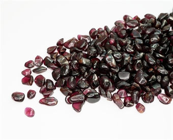 Storkøb 50 carat granater fra Afrika. Krystallerne er flodsten, udvasket fra bjergene, så de har en blød lækker overflade. Varianten kaldes rhodolit granat, farven er rød til rød-violet. Fine klare ædelsten, der kan bruges til facetslibning.