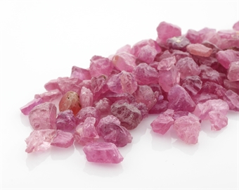 Et parti på 250 carat i farver fra pink over i lyserød. Krystallerne er mineret i Madagaskar, de varierer i form, klarhed og størrelse.